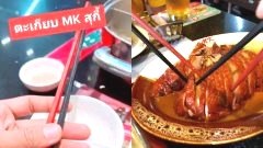 หนุ่มใจกล้า "ไขข้อสงสัย" ถามพนักงาน ทำไมตะเกียบ "MK" ต้องมีคนละสี!?