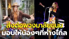 รับบุญถ้วนหน้า! "ปาล์มมี่" ส่งต่อพวงมาลัยขนมที่ได้จากแฟนเพลง มอบให้น้องๆที่ห่างไกล