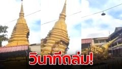 เผยคลิป! วินาที "พระธาตุอายุกว่า 500 ปี" ทรุดตัวพังถล่มลงมา