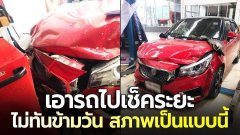 สาวช็อกหนัก! เอารถไปเข้าศูนย์เช็กระยะ ไม่ทันข้ามวันศูนย์โทรตามมาดูสภาพรถ พังยับแทบไม่เหลือซาก