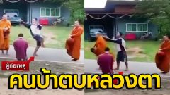 หนุ่มหลอนยาพุ่งเข้า ตบท้ายทอยพระ ขณะกำลังบิณฑบาต-ให้ศีลให้พรญาติโยม