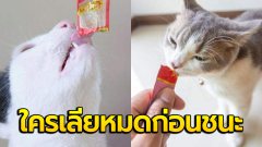 เมืองทอง! จัดกิจกรรม "แข่งกินขนมแมวเลีย" ใครเลียหมดก่อนชนะทันที