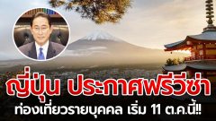 นายกฯ "ญี่ปุ่น" ประกาศ ฟรีวีซ่าท่องเที่ยวรายบุคคล "ไม่ต้องผ่านกรุ๊ปทัวร์" ตั้งแต่ 11 ต.ค.นี้