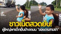 ชาวเน็ตสวดยับ! ผู้ใหญ่พาเด็กเล็ก มายืนข้างถนนทำ "ท่าขอแตรสามช่า"