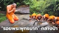 เป็นบุญตา! กลุ่มพระสงฆ์ขึ้น เขาไปกราบนมัสการ "รอยพระพุทธบาท" กลางป่า