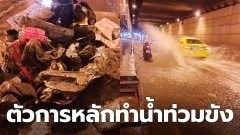 กองขยะอุดตัน! ตัวการหลักทำน้ำท่วมขัง ในอุโมงค์ทางลอดพัฒนาการ-ถาวรธวัช