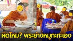 ชาวเน็ตวิจารย์สนั่น! พระสงฆ์นั่ง "ย่างหมูกระทะเอง" ได้หรือไม่ ทำแล้วไม่ผิดวินัยหรอ?