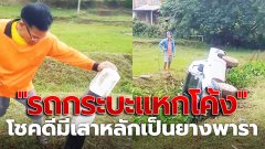 หนุ่มเผยคลิป "รถกระบะแหกโค้ง" โชคดีมีเสาหลักเป็นยางพารา ถ้าไม่งั้นคงพังยับ