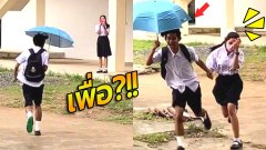 โรแมนติกมาก! นักเรียนหนุ่ม กางร่มไปรับเพื่อนสาว แต่ ขากลับเเปลกๆนะ