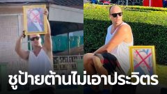 ทนไม่ไหวแล้ว! หนุ่มต่างชาติ ชูป้ายต้านไม่เอารัฐบาล "ประวิตร" กลางสี่แยกระยอง