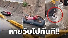 "หนุ่มเม็กซิโก" ล่องแก่งสุดพิเรนท์ ในร่องถนน ก่อนถูกดูดลงท่อระบายน้ำหายวับไปทันที