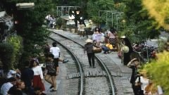 อย่าหาทำ หนุ่มปั่นจักรยานมุดลอดไม้กั้นทางรถไฟ หวิดถูกทับ อีกนิดเดียว !
