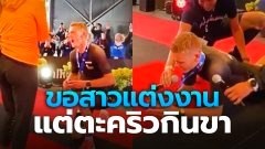 หนุ่มนักกีฬา คุกเข่าขอแฟนแต่งงาน แต่ตะคริวกินขา ถึงกับต้องนอนขอ