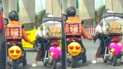 "หนุ่มไรเดอร์" จับมือ "สาวยาคูลท์" สวีทหวาน กลางแยกไฟแดง