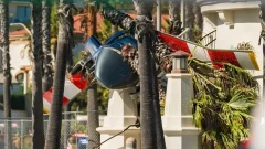สหรัฐ | เฮลิคอปเตอร์ Bell 222 หมุนคว้างตกกลางเมืองฮันติงตันบีช พุ่งชนต้นปาล์มและสะพานคนเดิน เจ็บ 5 ราย