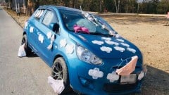 สาวขับเก๋ง จอดทิ้งข้างทาง แขวนเกงใน-ยกทรง แปะผ้าอนามัย ไว้รอบคัน แล้วโบกรถตู้ไปต่อ