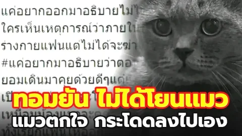 ทอมออกมาชี้เเจงไม่ได้โยนเเมว เเต่น้องตกใจเสียงดังเลยกระโดดลงไปเอง ย้ำเป็นคนรักเเมวเหมือนกัน 😔
