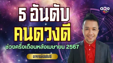 5 อันดับคนดวงดีตามลักขณาราศีเกิด ช่วงครึ่งเดือนหลังเมษายน 2567อาจารย์ปอยิปซี