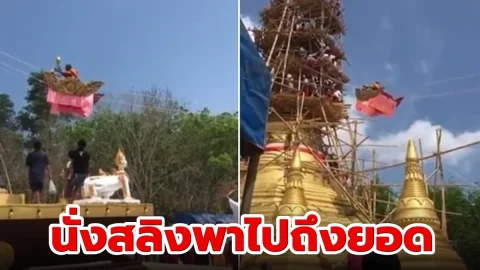 มิติใหม่! หลวงพ่อวัดดังทำพิธียกฉัตรเจดีย์..โดยการนั่งสลิงพาไปถึงยอด