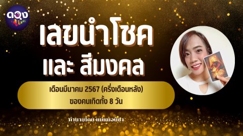 เลขนำโชคและสีมงคล เดือนมีนาคม 2567 (ครึ่งเดือนหลัง) ของคนเกิดทั้ง 8 วัน ทำนายโดย แม่หมอนิชา