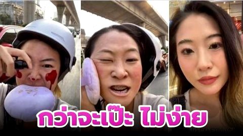 สาวรีวิวแต่งหน้าบนรถมอไซด์..กว่าจะเป๊ะไม่ใช่ง่ายๆ เลย