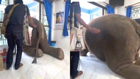 ช้างน้อยทำตัวจิ๋ว มุดเข้าบ้าน..อวยพรวันเกิดคุณตา