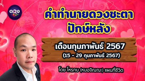คำทำนายดวงชะตา ปักษ์หลัง เดือนกุมภาพันธ์ 2567(15 - 29 กุมภาพันธ์ 2567) โดยโหรกบ (หมอจิณณะ) แผนที่ชีวิต