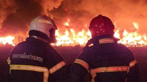 ใบอ้อยที่ถูกเผาปลิวมาตกใส่ถังสีในโรงงานปุ๋ย เกิดไหม้และระเบิด