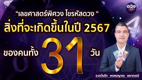 “เลขศาสตร์พิศวง ไขรหัสดวง “สิ่งที่จะเกิดขึ้นในปี 2567 ของคนทั้ง 31 วัน พยากรณ์โดย อ.เทวินโท พรหมญาณ พยากรณ์
