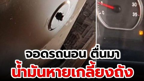 หนุ่มรถบรรทุกเซ็ง จอดนอนริมถนน ตื่นเช้าน้ำมันหายเกลี้ยงถัง