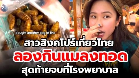 เกือบขิต!! สาวสิงคโปร์มาเที่ยวไทย ลองกินแมลงทอด สุดท้ายจบที่โรงพยาบาล