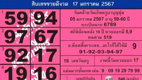 10 อันดับ เลขเด็ดขายดีประจำงวดวันที่ 17 มกราคม 2567