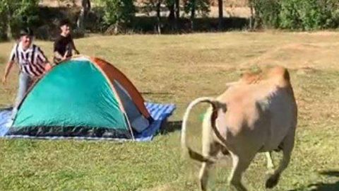 นึกว่าโปรของที่พัก วัวคลั่งไล่ขวิดนักท่องเที่ยว ลานกางเต็นท์