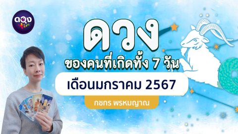 ดวงของคนที่เกิดทั้ง 7 วัน เดือนมกราคม 2567 By กชกร พรหมญาณ