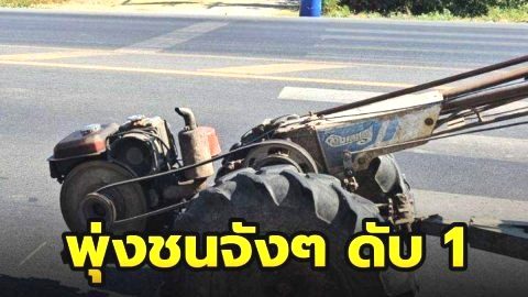 รถไถชะลอเลี้ยวกลางถนน กระบะขับตามหลังเบรกไม่ทัน พุ่งชนจังๆ ดับ 1