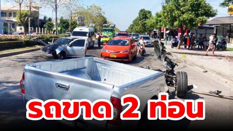 ชนโหด กระบะหักหลบรถอีกคัน พลิกคว่ำขาดเป็น 2 ท่อน