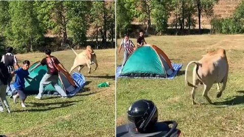 วัวคลั่งหลุดลานกางเต็นท์..นักท่องเที่ยวหนีตายกระเจิง