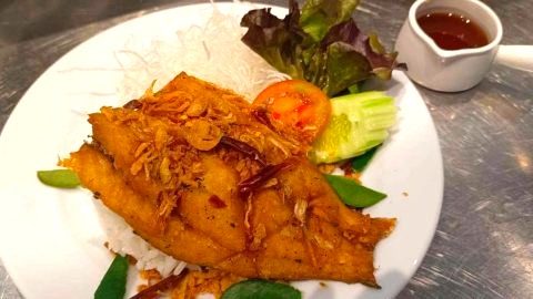 ข้าวปลากระพงทอดซอสมะขาม