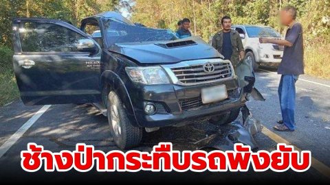 สองตายาย! ขับกระบะเจอช้างป่า กระทืบรถพังยับ