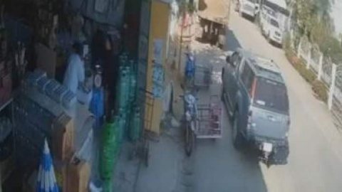 ผัวลูกหนี้ ขับกระบะพุ่งชนเจ้าหนี้ อัดติดเสาไฟฟ้า