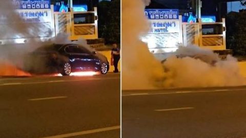 เก๋งหรูจอดอยู่ จู่ๆ มีไฟพุ่งควันโขมง..หน้าปั๊มทางขึ้นเขาป่าตอง