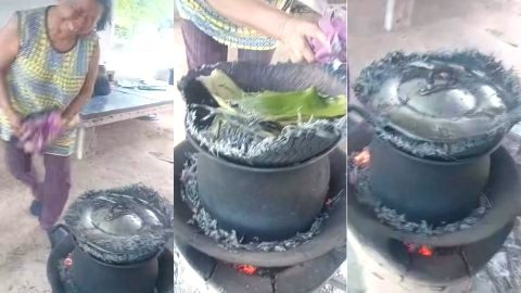 เมื่อเเม่นึ่งข้าวเหนียวไว้ เเต่ดันลืมดู กลายเป็นถ่านไปเเล้ว 😁