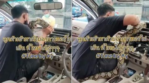 แทบช็อก!! แอร์รถจะเย็นได้ยังไง..เพราะมีงูตัวใหญ่เข้าไปขดอยู่