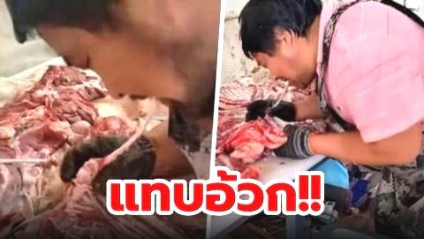 แทบอ้วก!! คนงานใช้ปากแทะเนื้อจากซี่โครง..อ้างเป็นเทคนิคเก่าแก่ของจีน