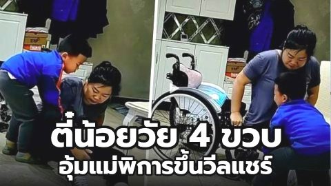สุดยอดลูกกตัญญู..ตี๋น้อยวัย 4 ขวบอุ้มแม่พิการขึ้นวีลแชร์