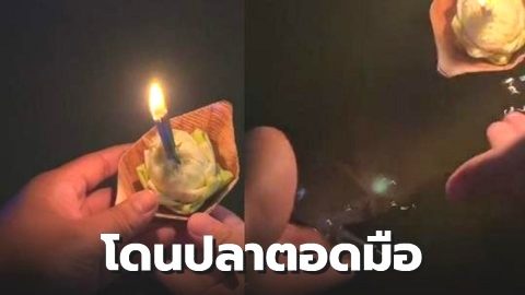 สาวโดนปลาตอดมือ..ขณะวักน้ำเพื่อที่จะลอยกระทง