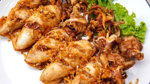 ปลาหมึกยัดไส้ทอดกระเทียม