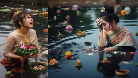 สาวโพสต์ภาพ AI "พระแม่คงคาร้องไห้"..สะท้อนปัญหาขยะ "ลอยกระทง"