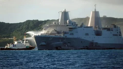 เรือรบอเมริกาไฟไหม้นาน 12 ชั่วโมงนอกชายฝั่งญี่ปุ่น