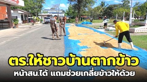 ยอมให้ตากนะ!! สถานีตำรวจภูธรบ้านด่าน อนุญาตให้ชาวบ้านนำข้าวมาตากหน้าสถานีได้ เเถมคนช่วยเกลี่ยข้าวฟรีด้วยนะ 😊